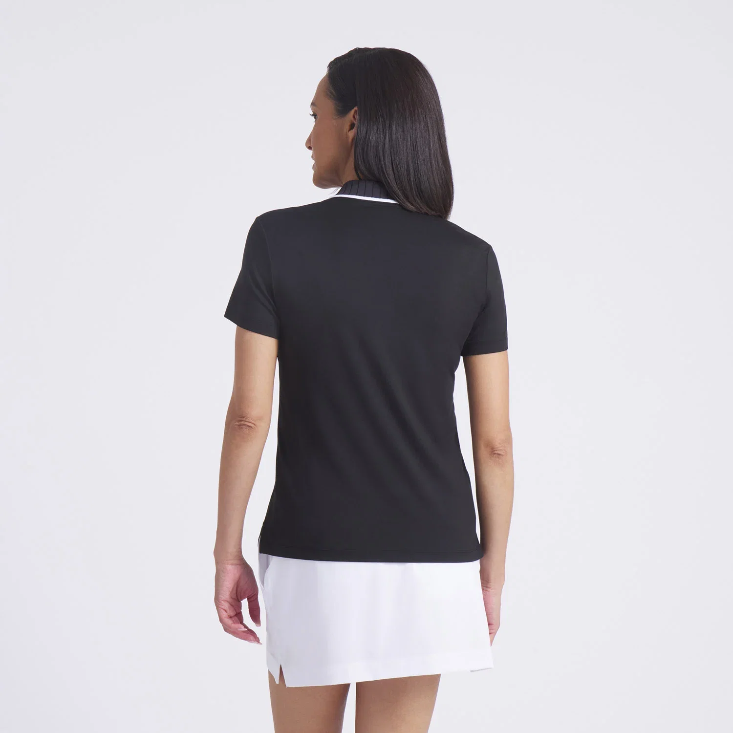 Golfkläder till dam när de är som bäst, en klassisk golfpiké i snabbtorkande funktionsmaterial med stretch för en skön känsla på kroppen när solen värmer. Pikétröja har 5 st knappar i halsen för ett lite mer feminint uttryck. Lite diskret logo ton i ton för en klassisk look. Storsäljare som finns i flera färger!